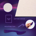 Choose the color you want to start with, pick up the clay with your fingers, and boldly apply it to the canvas. Create your background, then sculpt according to the template and transfer parts of the painting to the base. Feel how art is born under your hand.