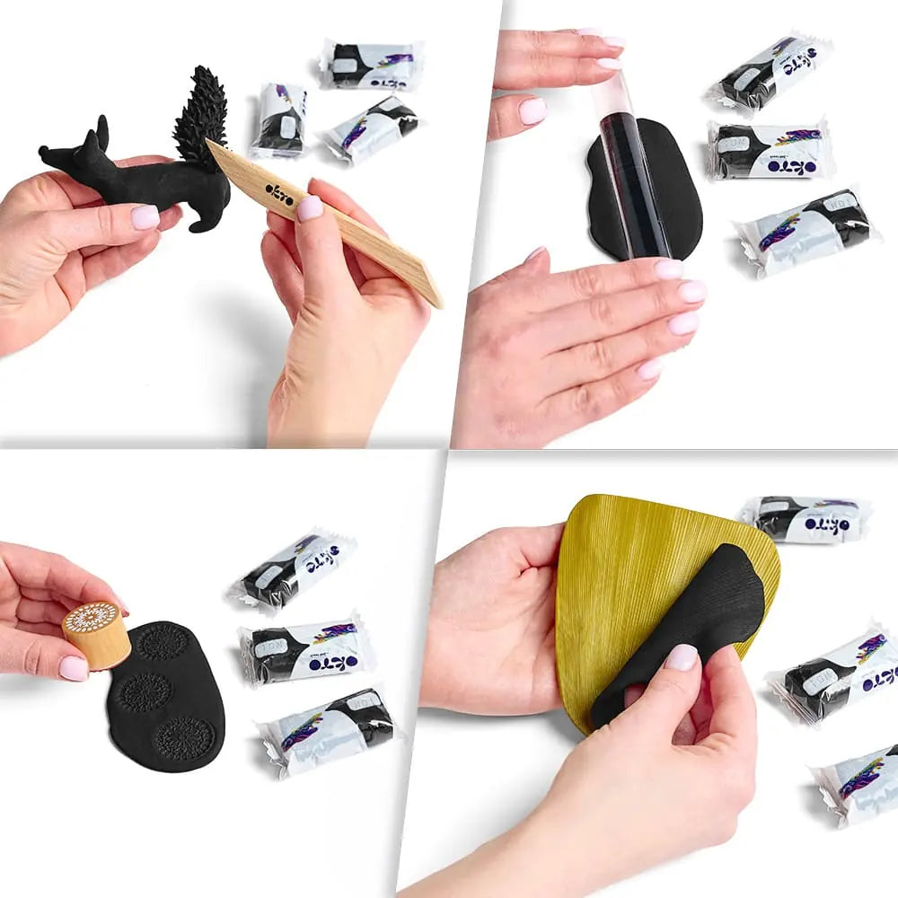 This set will help you bring any ideas to life. Work with the stack, roll it out, apply textures, and use the mold. Then paint the finished masterpieces as your inspiration guides you.