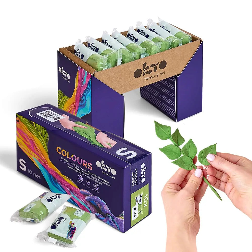 The conveniently packaged olive Air Clay makes creativity easy and fun, so that nothing limits your imagination. And the box easily transforms into a table stand to make your artistic process even more comfortable.
