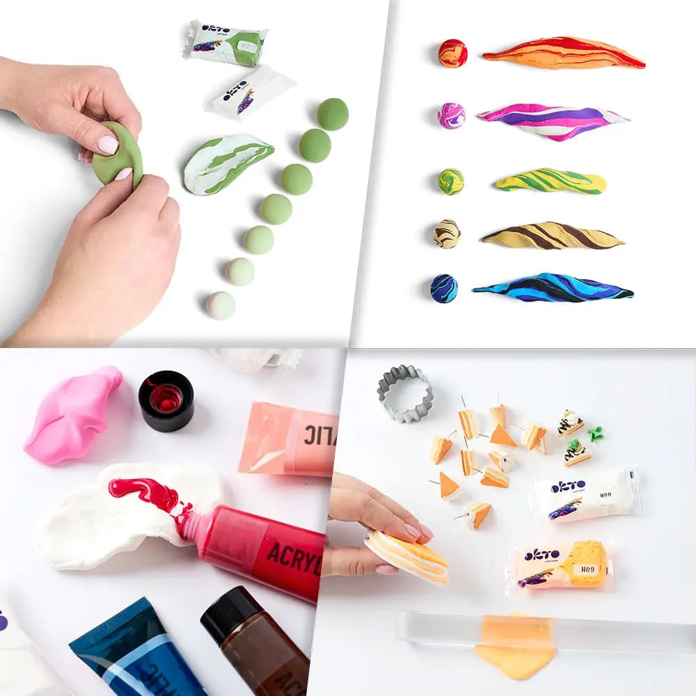 Choose the color you want to start with, pick up the clay with your fingers, and boldly apply it to the canvas. Create your background, then sculpt according to the template and transfer parts of the painting to the base. Feel how art is born under your hand.