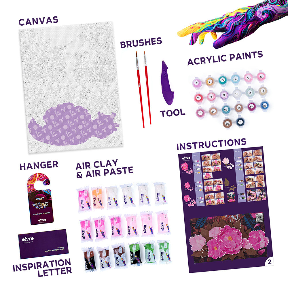 3D modeling+painting kit TM OKTO & Ideyka "Hummingbirds in love" 11.8" x 15.7" inch